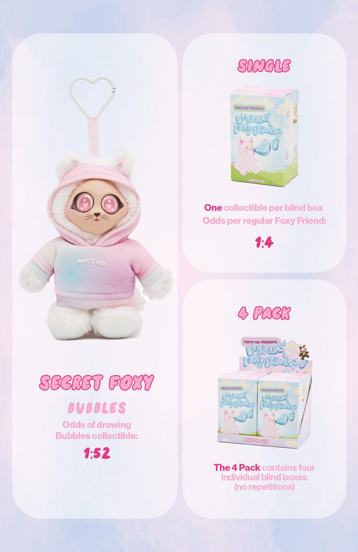 Meet Bubbles and Foxy Friends, with their long bushy tails and pointed ears, these furry friends are having fun chasing after Bubbles. Who will join your collection? Discover them all, and see if you can find Bubbles!